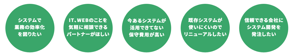 京都・滋賀を中心に、WEBシステム・業務システムの受託開発を行なっています。業務の効率化やビジネスアイデアを形にするための企画からすでに運用中のWEBシステム・業務システムに関するご相談まで、経験豊富なエンジニアが、クライアント様やその先にいるエンドユーザー様の目線に立ったサービスをご提案いたします。20年以上に渡る幅広い業種での開発経験を武器に、「こんなシステムがあったらいいな」「運用中のシステムがうまく動かない」「システムのことを相談したい」など業務に関するお悩み・お困りごとを解決へと導きます。